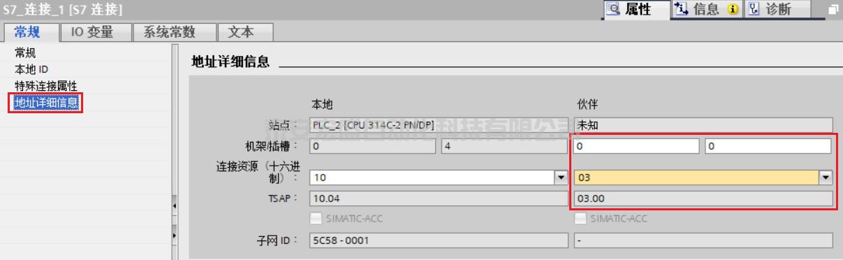 ③ 地址詳細信息內,設置本地和伙伴雙方 TSAP,如圖 15 所示。