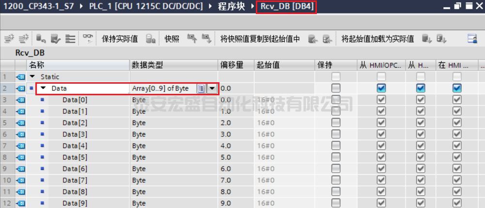 | RD_1 | :=P#DB4.DBX0.0 BYTE 10 | //本地接收數(shù)據(jù)地址 |