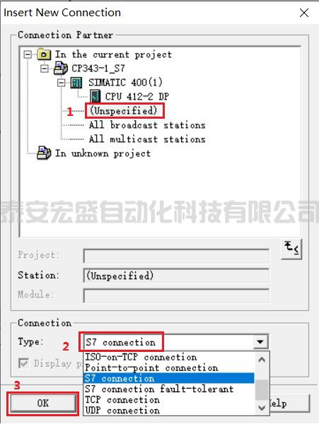 ②選擇未指定的伙伴,類型選擇 S7 連接,然后確定,如圖 34 所示。