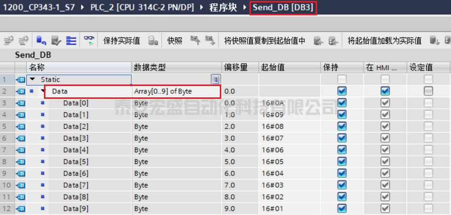 圖 17. S7-300 創(chuàng)建發(fā)送數(shù)據(jù)區(qū) DB 塊