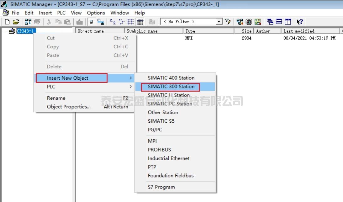(3) 在 CP343-1_S7 下點擊右鍵 “Insert New Object”,選擇 “SIMATIC 300 Station”,如圖 25 所示。
