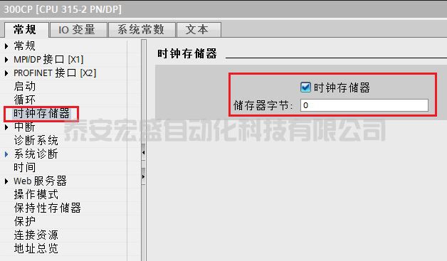 在 “項目樹” > “300PN” > “設備組態(tài)” 中,選中 CPU ,然后在下面的屬性窗口中,“屬性” > “時鐘存儲器” 下時鐘字節(jié)定義在 MB0,如圖3所示。