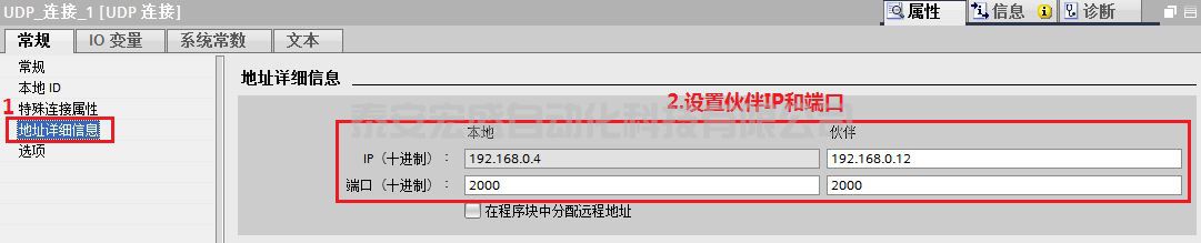 不同地方在于使用TSEND_C設置的伙伴IP地址和端口號(如對方CP343-1 的 IP:192.168.0.4,端口號:2000),如圖1所示。