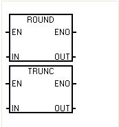 ROUND取整指令將實(shí)數(shù)(IN)轉(zhuǎn)換成雙整數(shù),采用四舍五入的原則,將結(jié)果置入OUT指定的變量中。