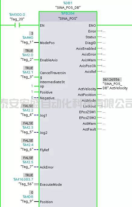 (4)FB284功能塊選擇工作模式ModPos=4;