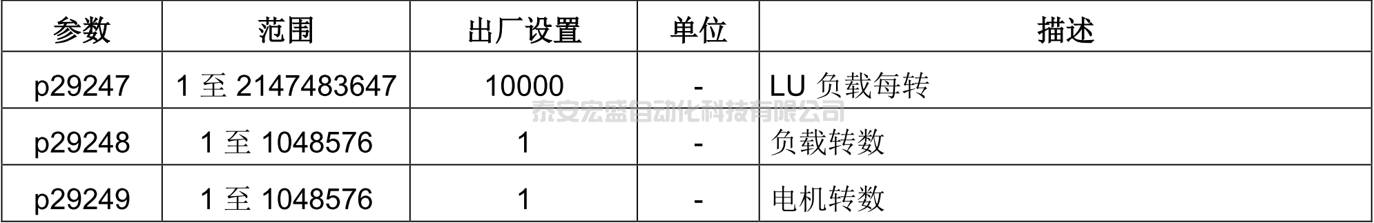 P29247為負載每轉的LU值,其可以自己定義。目的是讓負載每轉的位移單位與EPOS中的LU建立關系,例如:負載每轉10mm,P29247設置為10000LU,也就是10mm=10000LU,那么設定1LU,負載會位移0.001mm(=1um)