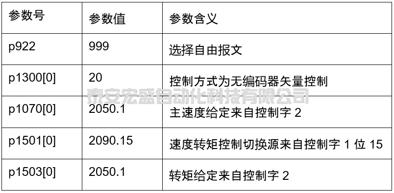 這里,2050.1在速度模式下作為速度給定,在轉矩模式下則作為轉矩給定。在轉矩模式下,雖然主速度給定p1070仍然關聯到2050.1,但是處于失效狀態(tài)。