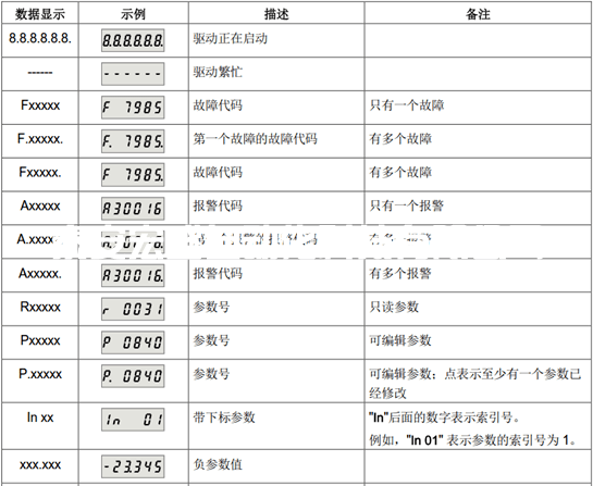 為了正確定位故障的具體原因,可以通過(guò)查看顯示面板或驅(qū)動(dòng)的相關(guān)參數(shù)來(lái)獲得故障驅(qū)動(dòng)的報(bào)警及故障代碼。