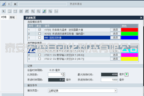 驅(qū)動(dòng)調(diào)試軟件提供了強(qiáng)大的Trace功能,即能夠跟蹤某些重要的參數(shù)(例如轉(zhuǎn)速,輸入輸出電流,直流部分電壓…),并以曲線形式記錄下來(lái),便于調(diào)試人員進(jìn)行分析。工程師可以把需要的驅(qū)動(dòng)信號(hào)添加到信號(hào)表中進(jìn)行跟蹤記錄,進(jìn)行驅(qū)動(dòng)運(yùn)行狀態(tài)的分析,可做為判斷故障的來(lái)源輔助手段。