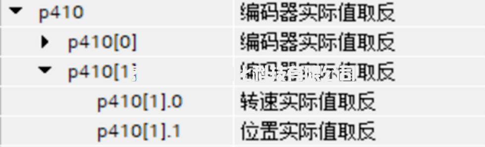 2)通過修改參數(shù)P410來對編碼器的值進(jìn)行取反操作,在修改參數(shù)時要注意修改這個參數(shù)要先將P10=4,然后才可以進(jìn)行修改。另外要注意這個參數(shù)屬于編碼器數(shù)據(jù)組中的參數(shù)見下圖,其P410[0]代表編碼器1,P410[1]代表編碼器2,在修改時要對應(yīng)相應(yīng)的編碼器進(jìn)行修改。