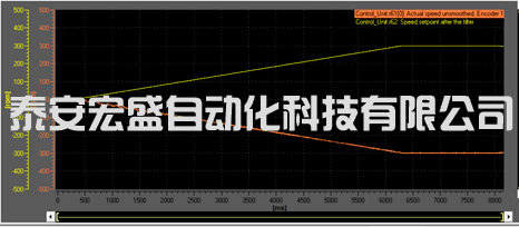 首先設(shè)置P1300=0,使變頻器運行在開環(huán)方式下,然后給定速度并啟動變頻器。變頻器運行后,查看參數(shù)r61的值與設(shè)定速度r62的值是否一致,如果這兩個值一致,則說明方向正確。如果這兩個值相反,則說明當(dāng)前速度編碼器的方向反了,就像下圖曲線顯示的一樣,這時就需要對速度編碼器反饋的速度實際值進(jìn)行取反操作了。