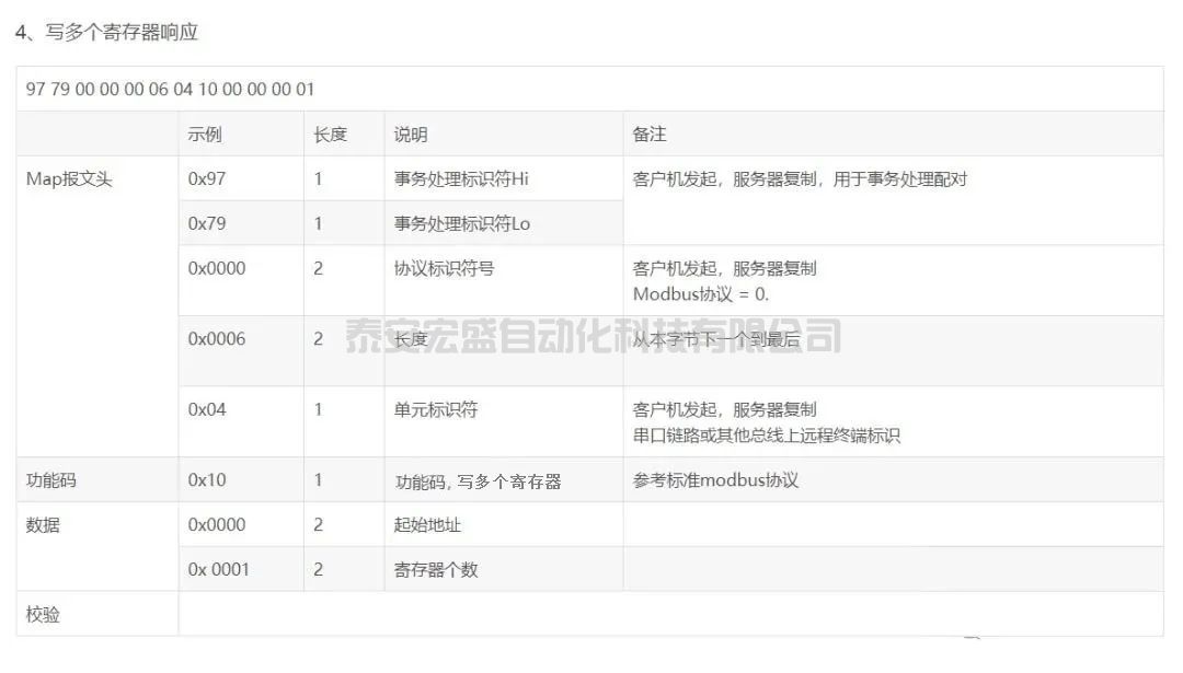 00 01 00 00 00 06 01 04 00 02 00 05回:數(shù)據(jù)長度為0x0A,第一個(gè)寄存器的數(shù)據(jù)為0x0c,其余為0x00