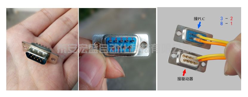 ??西門(mén)子485模塊的接頭采用了標(biāo)準(zhǔn)9 針D型插孔式連接器。為了將驅(qū)動(dòng)器和PLC連接起來(lái),我們要購(gòu)買DB9接頭,并用信號(hào)線將兩個(gè)頭連接起來(lái)。這里我們只利用兩個(gè)信號(hào)線即可。值得注意的是,西門(mén)子的485接口定義和常規(guī)的485不一樣,常規(guī)485的信號(hào)收發(fā)是1、2頭,而西門(mén)子的485則是3、8頭(參考手冊(cè)的第1769頁(yè))。所以在連線時(shí),要按照 3-2、8-1的對(duì)應(yīng)順序焊接,如下圖所示。