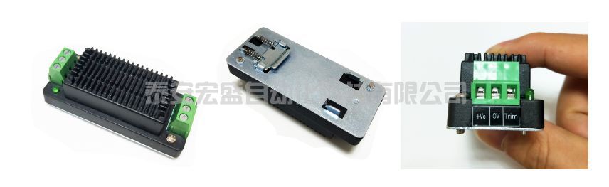 如果傳感器、控制器等器件和電池的輸出電壓不同,就需要使用電壓變換模塊,它還可以起到穩(wěn)壓的作用。一般傳感器常用的電壓是12V、控制器常用的電壓是24V,因此需要有相應(yīng)的模塊??梢赃x擇廣州金升陽(yáng)的電壓變換模塊,可選配散熱片和導(dǎo)軌,便于散熱和固定,如下圖所示的48V轉(zhuǎn)24V的模塊。選擇模塊時(shí)主要關(guān)心的功率,即它能提供的最大電流。