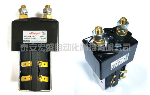■ \blacksquare■ 接觸器:用小電流控制大電流。上面的電源開(kāi)關(guān)只允許通過(guò)較小的電流,但有時(shí)設(shè)備里有些組件需要大電流才能啟動(dòng),例如舵輪驅(qū)動(dòng)器。我們不能用一個(gè)開(kāi)關(guān)既控制小電流也控制大電流,這時(shí)就需要借助接觸器。接觸器內(nèi)部有個(gè)電磁鐵,我們用小電流控制電磁鐵的吸合,電磁鐵帶動(dòng)另一組開(kāi)關(guān)閉合使大電流通過(guò)。在AGV上使用的是直流接觸器,注意接觸器的線圈會(huì)發(fā)出一定熱量,安裝應(yīng)當(dāng)注意散熱和對(duì)附近器件的影響。