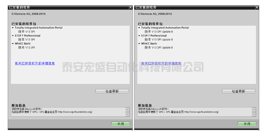 ??實(shí)際上,STEP 7 是過(guò)時(shí)的名稱,現(xiàn)在西門(mén)子想將它和另外幾個(gè)自動(dòng)化軟件都統(tǒng)一成一個(gè)平臺(tái),適用于西門(mén)子旗下所有的設(shè)備,這個(gè)平臺(tái)被稱為:TIA Portal(博途),本文使用的就是 TIA V13。西門(mén)子公司為了保持延續(xù)性,軟件的名稱有時(shí)是 STEP 7,有時(shí)又用 TIA,本文我為了與歷史統(tǒng)一還叫 STEP 7 好了。西門(mén)子的軟件跟硬件一樣種類繁多,光 STEP 7 就有幾個(gè)版本,例如專業(yè)版(professional SP1,如下圖左所示),而每個(gè)版本又有不同的更新包。注意 SP1 可能缺少某些功能(下面我會(huì)提到),因此我使用了更新包。具體來(lái)說(shuō),我使用的是 STEP 7 V13.0 SP1 Upd8,如下圖右所示。