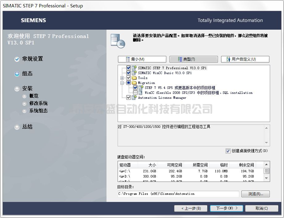 ??購(gòu)買了S1200 并不意味著你能免費(fèi)使用它的開(kāi)發(fā)軟件。但是沒(méi)關(guān)系,網(wǎng)上有很多破解軟件。有意思的是,其中有些資源就是西門(mén)子公司的人故意釋放出來(lái)的,他們可能想占有更多的市場(chǎng)。要對(duì)西門(mén)子的 PLC 編程必須使用專用的軟件:STEP 7 ,下圖是 STEP 7 的安裝過(guò)程。