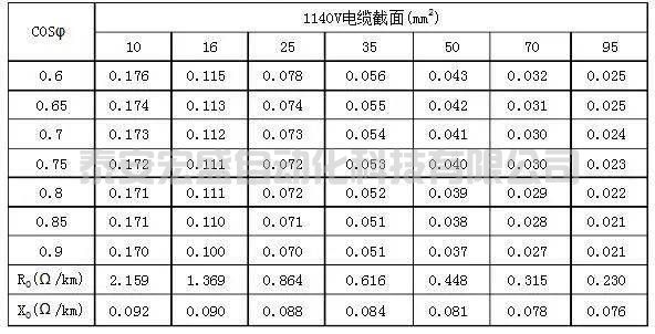 1140VMYP、MCP、MCPJ電纜每千瓦公里負(fù)荷矩的電壓損失%表