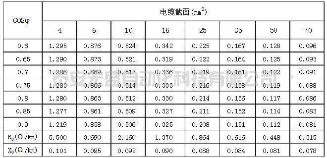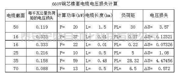 660V銅芯電纜每千瓦公里負(fù)荷矩的電壓損失%表