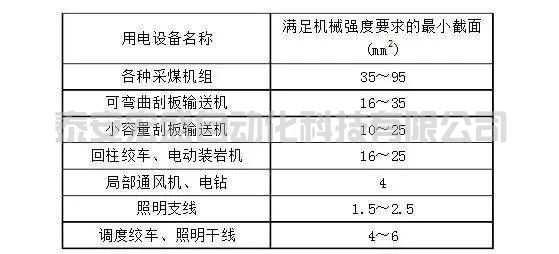 橡套電纜按機(jī)械強(qiáng)度要求的最小截面