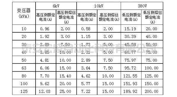 5.選擇低壓側(cè)熔絲電流一般選等于低壓側(cè)額定電流,若需選大一級,最大不能超過額定電流的30%。