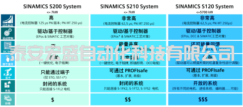 S200與S210及S120驅(qū)動(dòng)器相比: