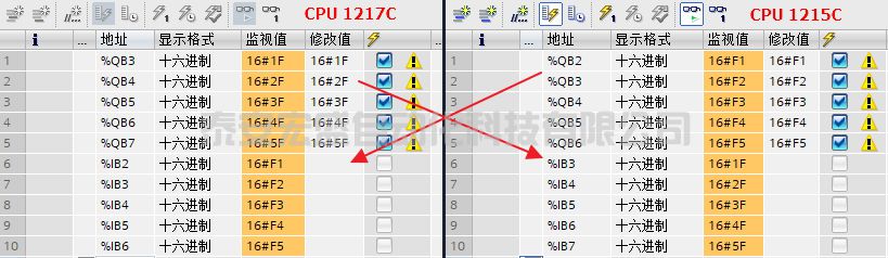 這樣1217控制器可以直接控制1215智能IO設備上的Q區(qū)數(shù)據(jù),同時讀取I區(qū)數(shù)據(jù)。測試結果如下: