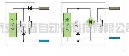 直流兩線制接近開關(guān)分二極管極性保護(hù)與橋整流極性保護(hù),前者在接PLC時(shí)需要注意極性,后者就不需要注意極性。有源舌簧磁性開關(guān)主要用在汽缸上做位置檢測(cè),由于需要信號(hào)指示,內(nèi)部有雙向二極管回路,因此也不需要注意極性;交流兩線制接近開關(guān)就不需要注意極性。如圖10: