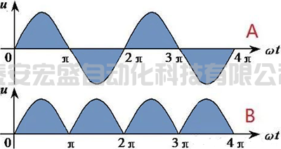 直流電又分恒定直流和脈動直流,恒定直流的大小和方向不隨時間改變,水平的一條直線,而脈動直流,大小隨時間改變,但方向不隨時間變化,也就是說,任何瞬間,它都跳不到負半軸。