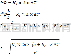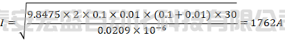 現(xiàn)在我們有了如下信息,銅排規(guī)格100×10,豎放,環(huán)境溫度35℃,允許允許的最高溫度為65℃,即允許銅排的溫升為30K,銅在65℃時(shí)的電阻率取近似值0.0209×10-6Ω·m,理論計(jì)算的綜合散熱系數(shù)Kt約為9.8475,則套用公式計(jì)算: