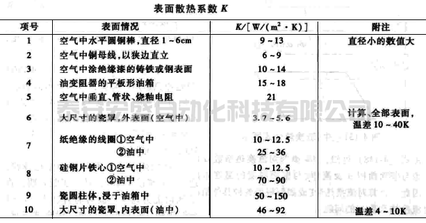 綜合散熱系數(shù)Kt通??繉?shí)驗(yàn)確定,在一定溫度范圍內(nèi)其值取常數(shù),如下表: