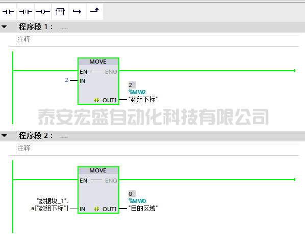 在數(shù)據(jù)塊的聲明中,數(shù)組只聲明了 2 個(gè)數(shù)組元素,下標(biāo)為 0-1,下標(biāo)為 2 超出了數(shù)據(jù)塊中聲明變量的范圍,故報(bào)故障“區(qū)域長(zhǎng)度錯(cuò)誤”。