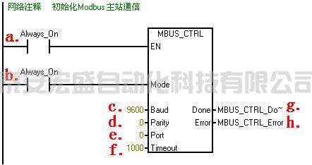 使用 SM0.0 調(diào)用 MBUS_CTRL 完成主站的初始化,并啟動其功能控制: