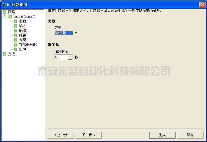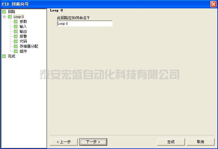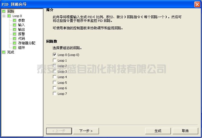 在此對話框中選擇要組態(tài)的回路。 最多可組態(tài) 8 個回路。 在此對話框上選擇回路時,PID 向?qū)ё髠?cè)的樹視圖隨組態(tài)該回路所需的所有節(jié)點一起更新。
