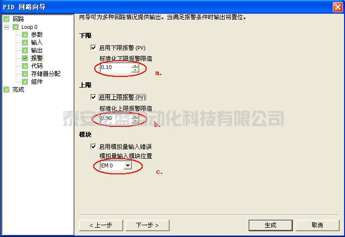 第六步:設(shè)定回路報警選項