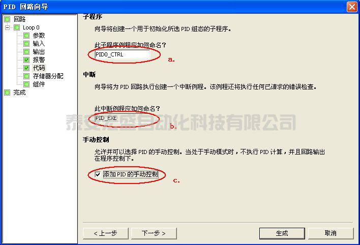 第七步:定義向?qū)傻腜ID初使化子程序和中斷程序名及手/自動模式