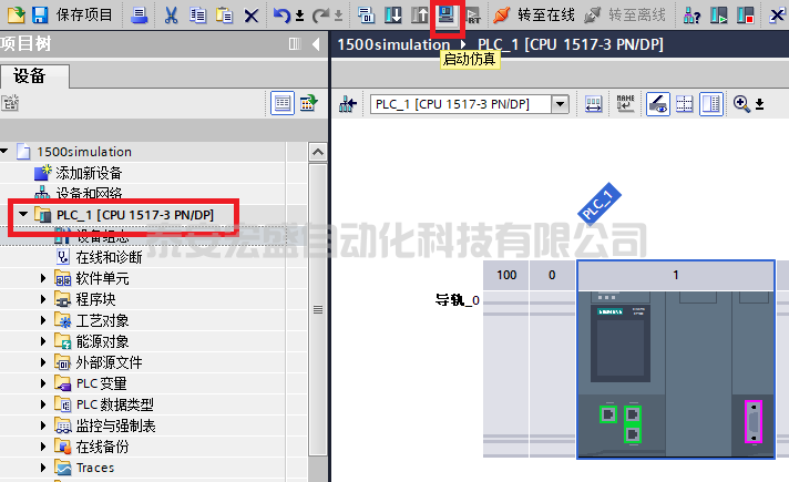 選擇PLC設(shè)備,點(diǎn)擊啟動(dòng)仿真。