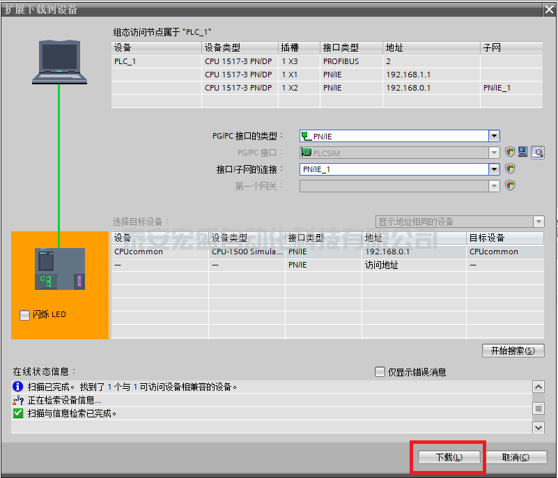 啟動(dòng)PLCSIM后,下載PLC項(xiàng)目。