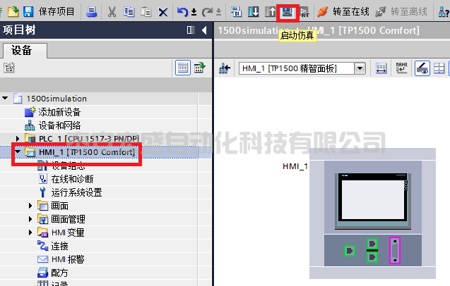 選擇HMI設(shè)備啟動(dòng)仿真。