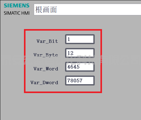 HMI仿真后可以準(zhǔn)確顯示PLC變量的數(shù)值,證明兩者聯(lián)合仿真已經(jīng)連接成功。