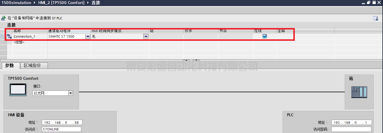 創(chuàng)建的集成連接可以在HMI設(shè)備下的連接中顯示。