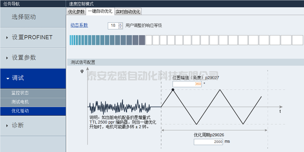 動態(tài)剛度等級:這是優(yōu)化V90伺服電機(jī)的動態(tài)性能參數(shù),數(shù)值越高,電機(jī)的動態(tài)相應(yīng)特性越好。但是,過高的動態(tài)響應(yīng)特性會引起電機(jī)的諧振,導(dǎo)致整個(gè)控制系統(tǒng)不穩(wěn)定,根據(jù)擺動的需求選擇合適的范圍。
