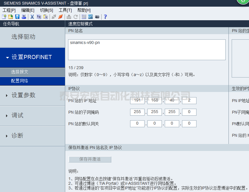 注意:PN站名和IP地址要和博圖組態(tài)一致。在配置完設(shè)備名稱以及 IP 地址之后,必須保存參數(shù)并重啟驅(qū)動來激活配置。