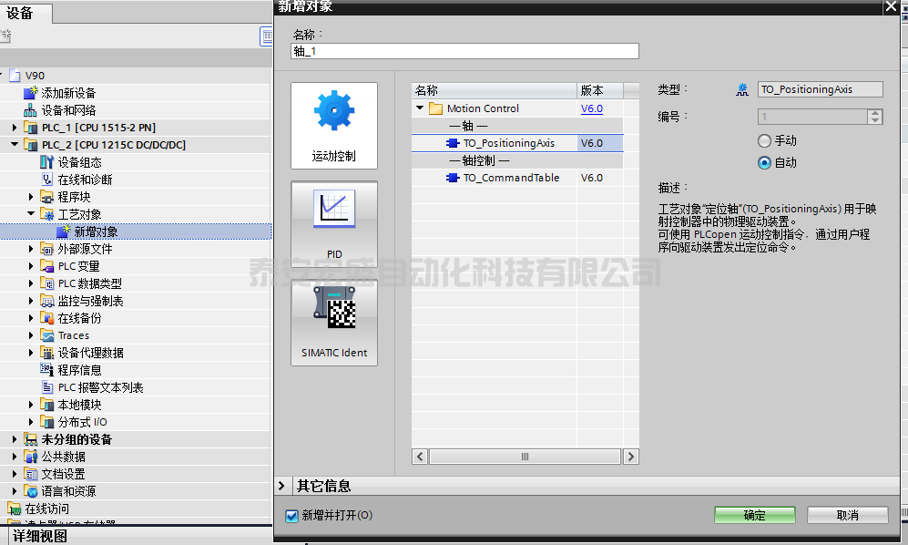 - 添加工藝對象,選擇TO_PosotioningAxis