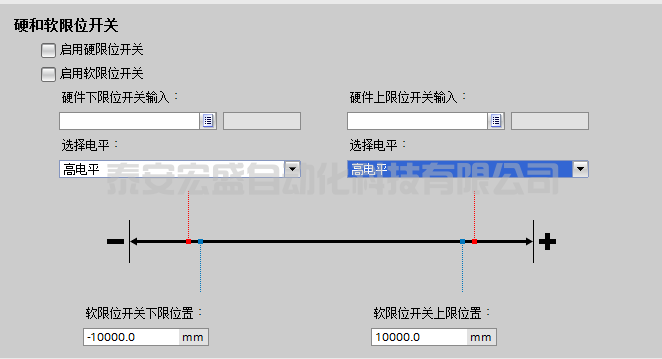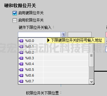 “啟用硬限位開關(guān)”并且填入開關(guān)的符號地址。當(dāng)限位開關(guān)感應(yīng)到后,伺服電機(jī)立即停止。此時(shí)伺服讀取的當(dāng)前位置會發(fā)生變化,和實(shí)際數(shù)值不符,需要讓電機(jī)反方向運(yùn)轉(zhuǎn),離開限位開關(guān),并斷電重啟。