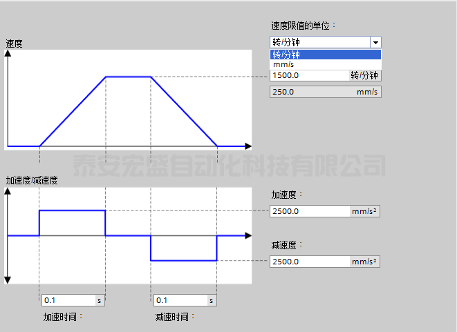 加減速度的斜坡時(shí)間設(shè)置為0.1,可以時(shí)伺服電機(jī)快速啟動和停止。此處是設(shè)置伺服電機(jī)的啟動和停止時(shí)間。