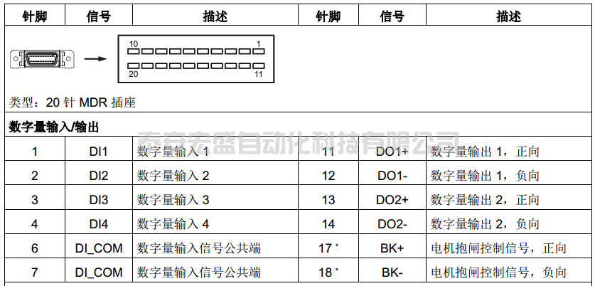- 對于 400 V 系列伺服驅(qū)動,電機(jī)抱閘接口(X7)集成在前面板。將其與帶抱閘的伺服電機(jī)連接即可使用電機(jī)抱閘功能。