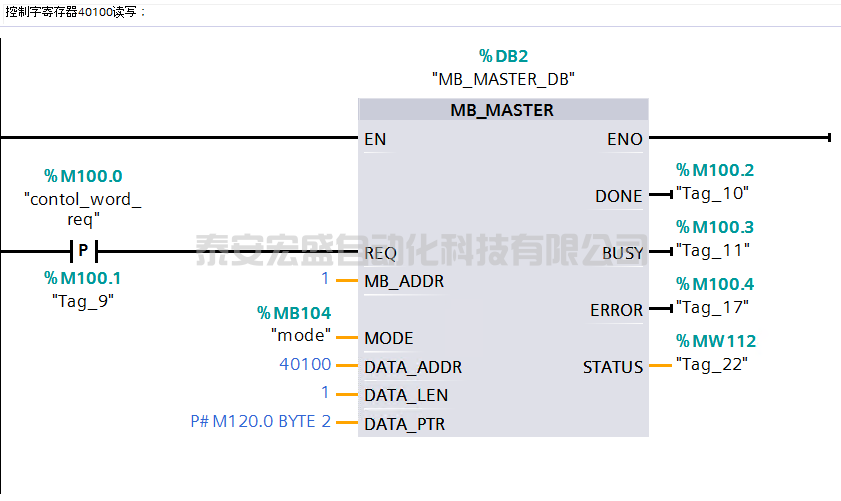 "MB_MASTER"指令允許程序作為 Modbus 主站使用點(diǎn)對點(diǎn)模塊 (CM) 或通信板 (CB) 上的端口進(jìn)行通信。傳送啟動后,EN 參數(shù) (LAD/FBD) 必須保持設(shè)置為值"1",直到指令將 DONE 或 ERROR 輸出參數(shù)設(shè)置為"1"為止。